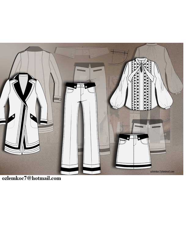 Digital fashion illustration CAD by Ozlem Koc shows how our mix & match Fashion Sketch Templates can be used to create unique apparel designs and fashion presentation boards!